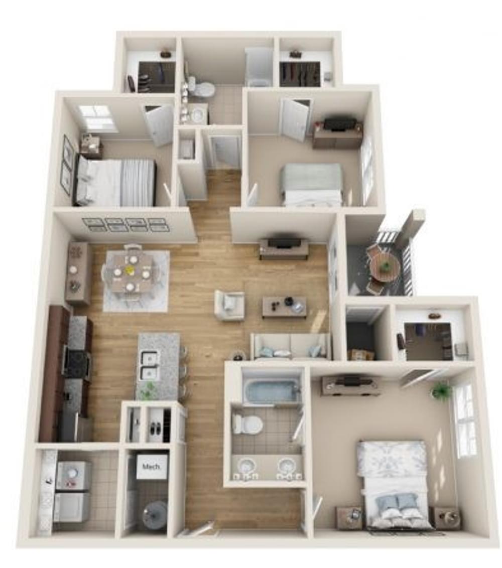 Unit Type3 Bed / 2 BathFloor Area1,200 sq. ft.AvailableTodayStarting at$1,766 / mo
